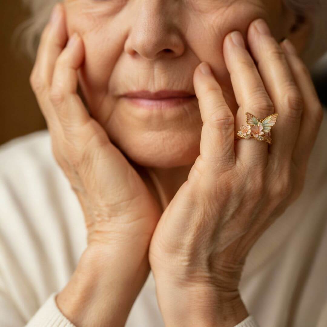 Butterfly Flower Enamel Gold Ring